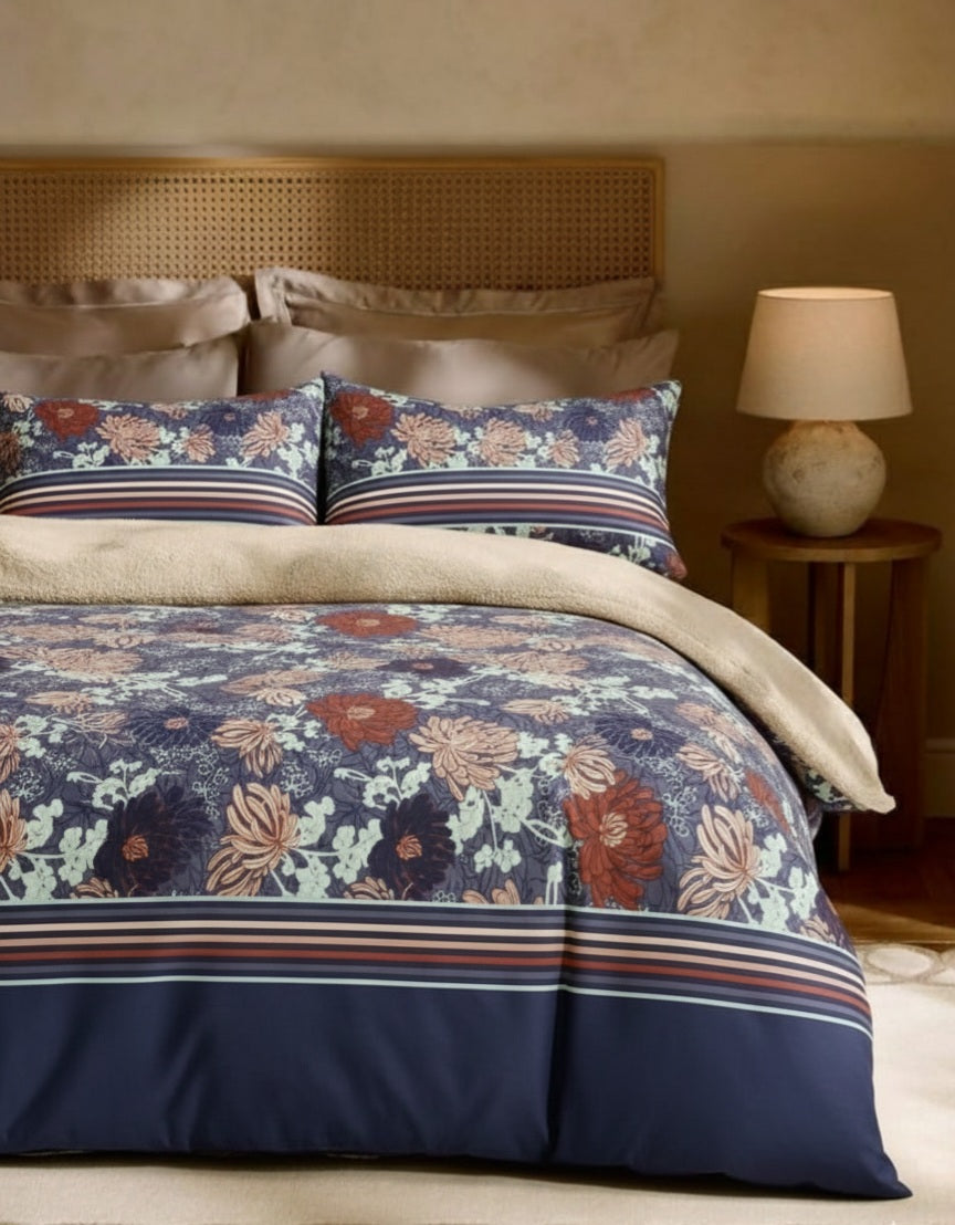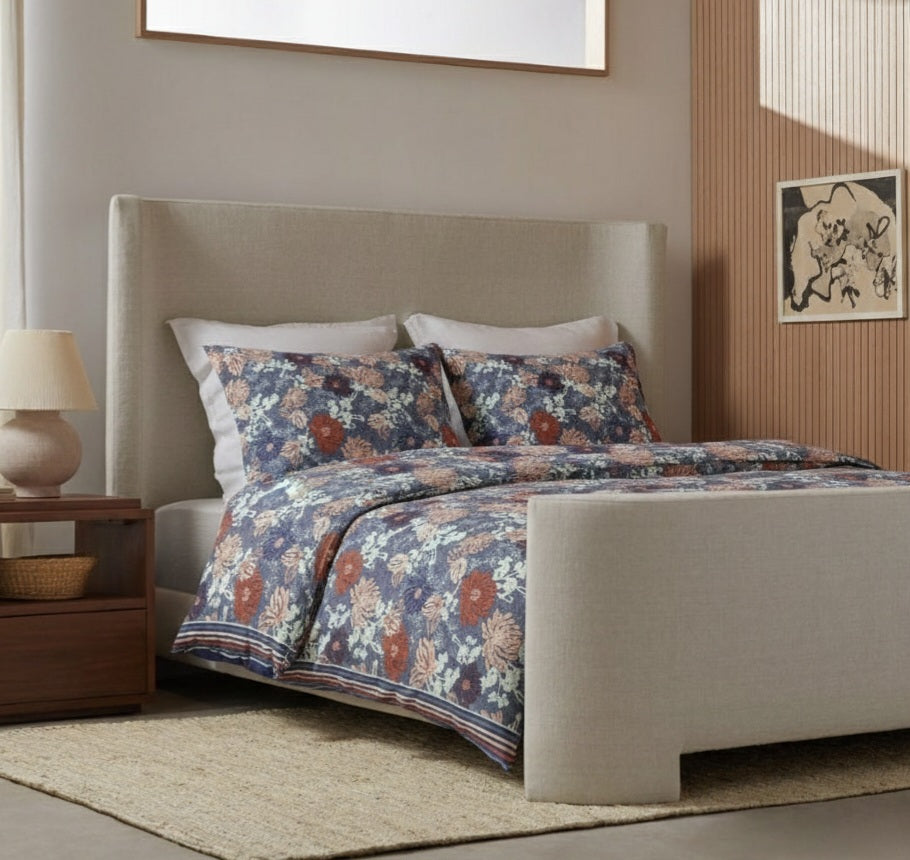 Rich indigo tones with a classic floral‑leaf pattern — perfect for adding bold yet elegant style to your bedroom.